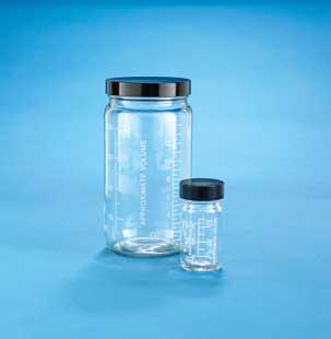 Clear Glass AC Medium Round Bottles, Graduated, Convenience Packs, Caps Attached |