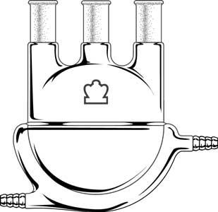 Description:Jacketed three-neck round-bottom reaction flask with Standard Taper outer joints, all vertical