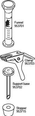 Products - Details Replacement Parts Description: Replacement Parts Part Number Name Description Case Qty Case Price, USD Quantity Add to Cart 953701-0000 Glass Funnel 15 mL Glass Funnel, 25mm 1 $52.61 953703-0000 Anodized Aluminum Clamp 25 mm Anodized Aluminum Clamp 1 $53.49 953702-0001 Fritted Glass Support Base for Microfiltration Assembly 25 mm Fritted Glass Support Base 1 $78.12 953715-0501 Silicone Stoppers with Holes No. 5 Silicone Stopper with 3/8" (9.5 mm) Hole for Use with 125 mL Filtration Flask 1 $14.84