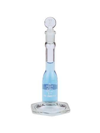 · Wide base (circular for sizes 1, 2, and 5 mL and hexagonal for sizes 10 and 25 mL) imparts much greater stability than is possible with a conventionally shaped flask